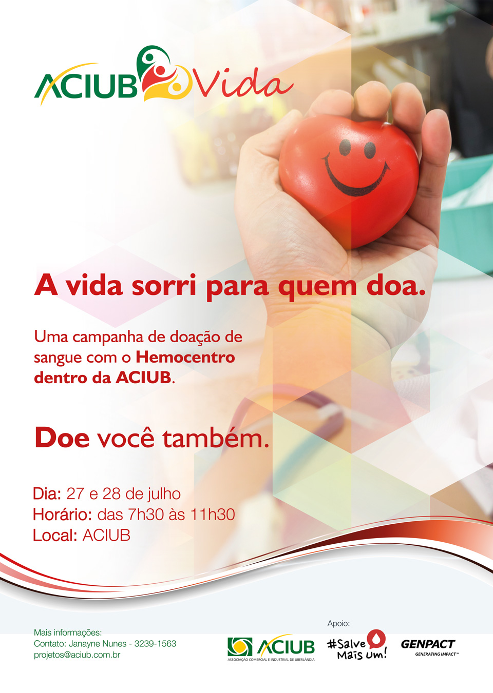 Nos dias 27 e 28 de julho a comunidade poderá realizar doação de sangue na Aciub – aqui no HBLOG