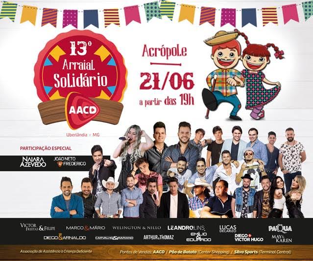 A 13ª edição da tradicional festa junina acontece dia 21 de junho e reúne nomes da música nacional e regional, que se apresentam em prol