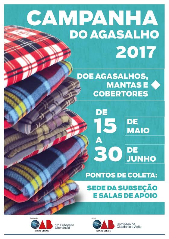 Postos de doações estão na Sede e Salas de apoio da OAB Uberlândia Com a chegada do inverno, a 13ª Subseção da OAB/MG, por meio