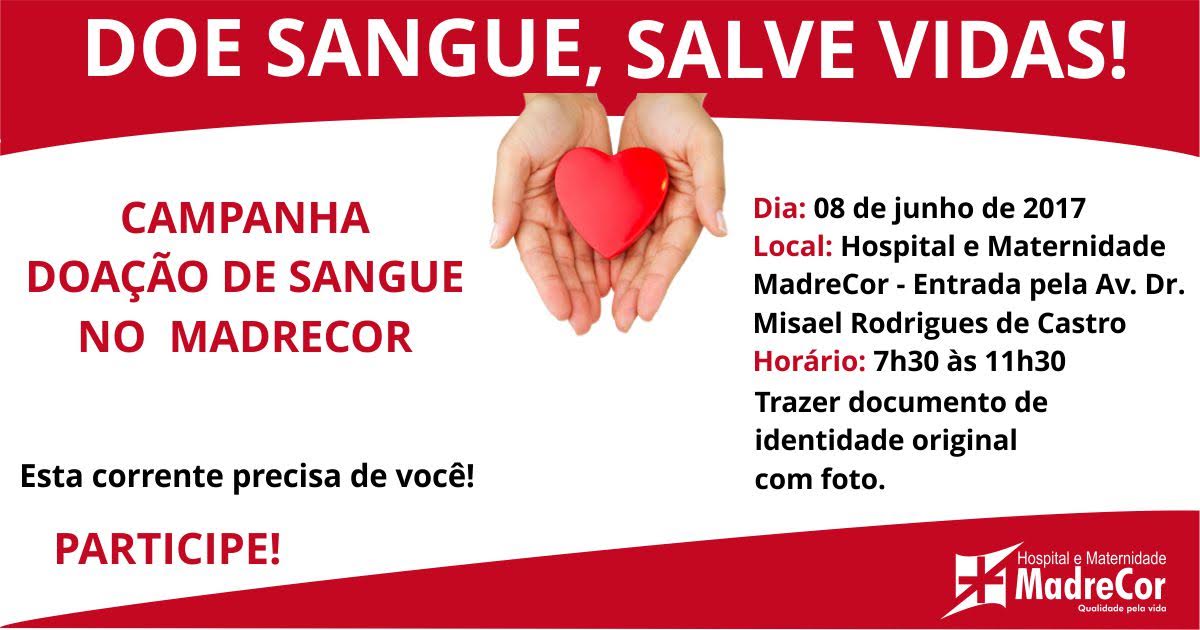 3º Campanha MadreCor Doe Sangue, Salve Vidas – vamos ajudar o HEMOCENTRO
