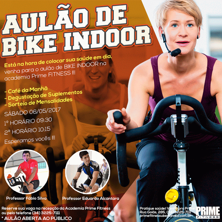 Está na hora de colocar sua saúde em dia, venha para o Aulão de BIKE INDOOR na academia Prime FITNESS !!! TEREMOS: – Café da